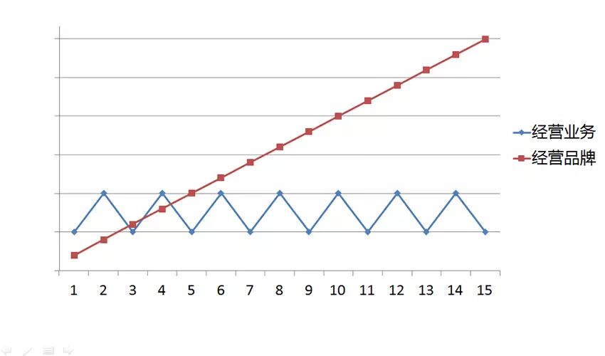 放在时间维度里,短期内经营业务更有成效,而伴随着时间积累,经营品牌终将一骑绝尘。